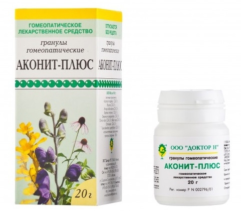 Гомеопатическле средство - гранулы Аконит-Плюс рекомендуется для лечения и предупреждения рецидивов ОРВИ с симптомокомплексом лихорадки, миалгией (болями в мышцах), интоксикацией, кашлем, насморком, болями и першением в горле.