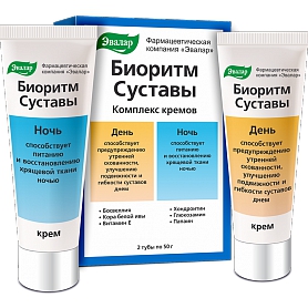Биоритм Суставы позволяет обеспечить суставам полноценную круглосуточную защиту и поддержку все 24 часа в сутки! «Биоритм Суставы» содержит целый комплекс витаминов и биологически активных веществ, суточная норма которых разделена на 2 таблетки – дневную и ночную (вечернюю).