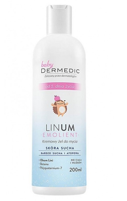 Dermedic Baby LINUM Кремовый гель для тела и волос с 1 дня жизни - бережно моет, не сушит кожу. Оказывает противовоспалительное и противозудное действие. Улучшает состояние даже чрезмерно сухой кожи.