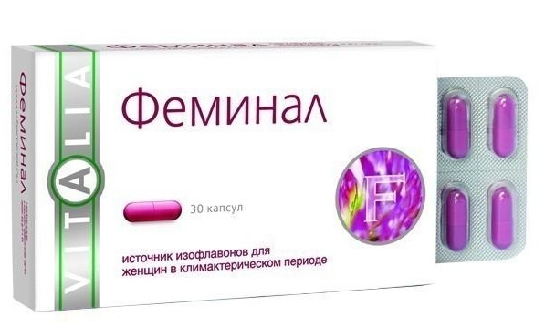 Феминал – биологически активная добавка к пище, изготовленная на базе изофлавонов, полученных из красного клевера. Каждая капсула содержит около 40 мг чистых изофлавонов. Сухой экстракт красного клевера содержит 4 изофлавона: Биоканин A (Biochanin А), Формононетин (Formononetin), Дайдзеин (Daidzein), Генистейн (Genistein).