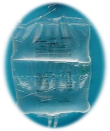 Для того, чтобы смешать растворы из камер "А" и "Б", следует удалить наружную упаковку и сразу же сломать хрупкую межкамерную заглушку. Дождаться полного перетекания раствора из верхней камеры в нижнюю. Осторожно перемешать путем надавливания обеими руками на стенки нижней камеры. Раствор следует вводить интраперитонеалыю не позднее 24 часов после смешивания.