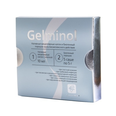Гельминоль – нативный мицеллярный мультикомплекс растительных капель и биогенного порошка на основе меристем активных структур растений и концентратов природных компонентов, направленный на нейтрализацию и устранение источников глистной инвазии, сопутствующей патогенной флоры, источников бактериальной, грибковой инфекции, восстановление и нормализацию обменных, пищеварительных, эндокринных процессов, состава крови и лимфы, функций мочеполовой системы, органов дыхания.