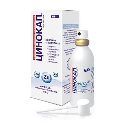 Цинокап обладает противовоспалительной, антибактериальной и противогрибковой активностью. Антибактериальная активность пиритиона цинка проявляется в отношении ряда грамположительных и грамотрицательных бактерий (Streptococcus spp., Staphylococcus spp., Escherichia coli, Pseudomonas aeruginosa, Proteus spp.) Пиритион цинк снижает внутриклеточный уровень АТФ, способствует деполяризации клеточных мембран, вызывая гибель грибов и бактерий.