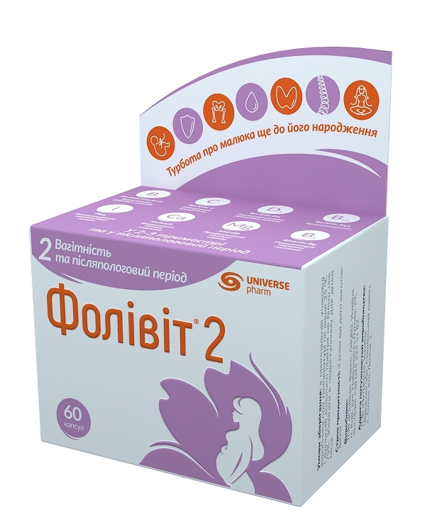 1 капсула содержит: фолиевая кислота - 200,0 мкг, калия йодид - 263,3 мкг (что соответствует 200 мкг содержания чистого йода), витамин В12 - 2,5 мкг, витамин Д3 - 10 мкг (400 МЕ), витамин В6 - 1,5 мг, витамин С - 50 мг, магния лактат...
