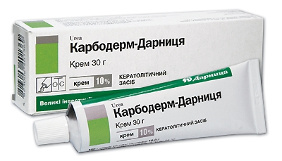 (СARBODERM-DARNITSA) Склад лікарського засобу:діюча речовина: 1 г крему містить 50 мг або 100 мг сечовини (в перерахуванні на 100 % суху речовину);допоміжні речовини: цетилпіридинію хлорид, пропіленгліколь, олія мінеральна, спирт цетостеариловий, вода очищена. Лікарська форма. Крем. Крем білого кольору без запаху. Назва і місцезнаходження виробника. ЗАТ...
