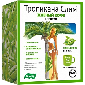 В составе таблеток Тропикана Слим 100% натуральный экстракт зеленого кофе. Главный секрет зеленого кофе – в содержании хлорогеновой кислоты, которой нет в обжаренном кофе. Благодаря ее чудесному действию, всего две таблетки Тропикана Слим в день (400 мг экстракта):стимулируют способность организма к естественному сжиганию жира;способствуют уменьшению...