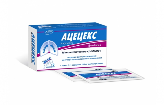 Ацетилцистеин – муколитическое и отхаркивающее средство, производное аминокислоты цистеина. Разжижает мокроту, увеличивает ее объем и облегчает выделение, способствует отхаркиванию. Действие ацетилцистеина связано со способностью его сульфгидрильных групп разрывать дисульфидные связи кислых мукополисахаридов мокроты, что приводит к деполяризации мукопротеидов и уменьшению вязкости слизи.