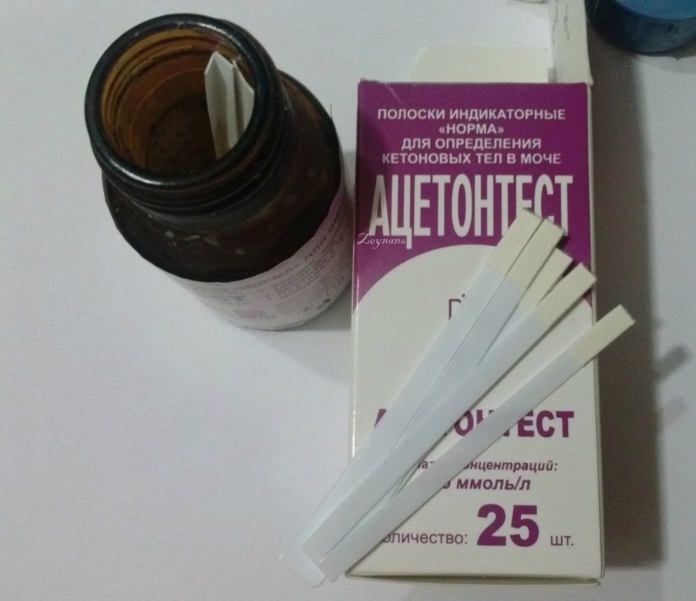 Кетоновые тела (ацетон, ацетоуксусная кислота). У здоровых людей содержание кетоновых тел обычными лабораторными методами не определяется. Цвет тест-полоски Ацетонтест не меняется.