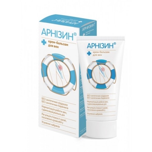 Арнизин Крем-бальзам для вен рекомендован в комплексных программах для лечения варикозного расширения вен, сосудистого рисунка. Снимает отеки, укрепляет стенки кровеносных сосудов, уменьшает проницаемость и хрупкость капилляров, оставляет ощущение свежести и прохлады. Способствует устранению «сосудистого рисунка» на коже. Экстракты, входящие в состав препарата, были получены по уникальной технологии (при сверхкритической заморозке С02), что даёт возможность получить максимальное количество полезных веществ.