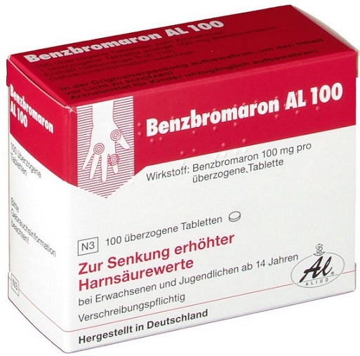 Бензобромарон – це протиподагричні ліки. Препарат має виражену урикозуричну дію (сприяє швидкому виведенню сечової кислоти). Такий ефект досягається головним чином за допомогою гальмування всмоктування в канальцях нирок сечової кислоти, розташованих у її центральній частині, а також збільшенням виведення сечової кислоти нирками. Бензобромарон показаний для застосування при подагрі. Також призначається при гіперурикемії – підвищеному показнику концентрації сечової кислоти у крові. У тому числі при артритах (запаленні суглобів), псоріазі, гематологічних захворюваннях та ін.
