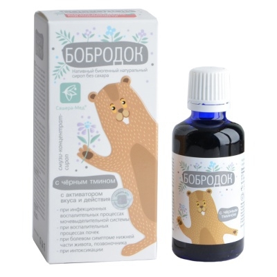 «Бобродок» с чёрным тмином – натуральное нативное средство полиактивного действия на основе биогенного комплекса концентрата семян, масла чёрного тмина (Nigella sativa) и активных структур природных компонентов, направленное на нейтрализацию источников бактериальной инфекции мочевого пузыря, мочевых каналов, почек, предупреждение развития осложнений и сопутствующих нарушений функций и состояния органов мочеполовой, иммунной, эндокринной, пищеварительной систем.