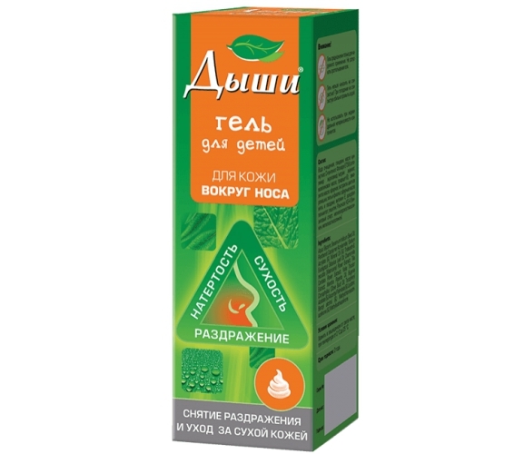 Гель для кожи вокруг носа "Дыши" для детей от 1-го года. Содержит витамин Е и D-пантенол, которые питают и увлажняют кожу. Экстракты цветков ромашки, липы и фиалки уменьшают раздражение и защищают от воспаления. Эфирные масла эвкалипта, мяты и гвоздики оказывают антисептическое действие.