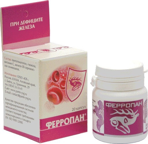 Ферропан является БАД и содержит поддерживающие дозы пантогематогена и железа, поэтому кроме верифицированных случаев железодефицитной анемии его применение рационально периодически повторять 2-3 раза в год для профилактики астенических состояний и улучшения адаптации.