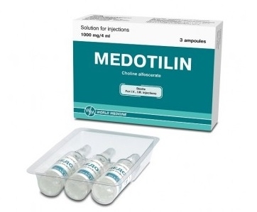 Механізм дії заснований на тому, що при потраплянні в організм холіну альфосцерат розщеплюється під дією ферментів на холін і гліцерофосфат: холін бере учать у біосинтезі ацетилхоліну – одного з основних медіаторів нервового збудження; гліцерофосфат є попередником фосфоліпідів (фосфатидилхоліну) нейронної мембрани. Таким чином, Медотилін покращує передачу нервових імпульсів у холінергічних нейронах,позитивно впливає на пластичність нейрональних мембран і функцію рецепторів. Медотилінпокращує церебральний кровотік, посилює метаболічні процеси в головному мозку, активує структури ретикулярної формації головного мозку і відновлює свідомість при травматичному ушкодженні головного мозку.