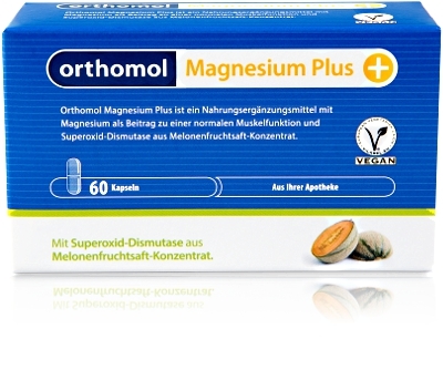 Orthomol Magnesium Plus (Ортомол Магнезиум Плюс) - витаминный комплекс с магнием на основе концентрата фруктового сока дыни, предназначенный для обеспечения нормальной работы функции мышц.