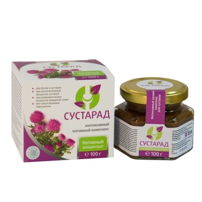 «Сустарад» – нативный комплекс природных концентратов в активной мицеллярной форме, направленный на хрящевую ткань суставов (коленных, тазобедренных, голеностопных, пальцев рук и ног, позвоночника), на суставную жидкость и эпифизы костей сустава, способствующий восстановлению хрящевой ткани, синовиальной жидкости сустава и эпифизов костей сустава.