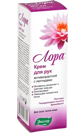 Крем Лора Эвалар: гиалуроновая кислота, L-карнозин, липосентол мульти (комплекс А, Е, F витаминов и растительных фосфолипидов), масло соевое, экстракт дикого ямса, липодерм 4/1, пептидные комплексы, растворимый коллаген с эластином, Тера-виталь (комплекс ДМАЭ и альфа-липоевой кислоты), спирт этиловый, глицерин, д-пантенол, эмульгатор Т-8, дипропиленгликоль, триэтаноламин, лецитин,...