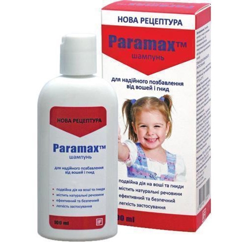 Парамакс (Paramax) – шампунь протипедикульозний. Формула шампуню від вошей Парамакс (Paramax) забезпечує подвійну механічну дію на вошей та гнід: блокує дихальні отвори у вошей та розчиняє зовнішній шар епікутикули, що призводить до зневоднення паразитів.