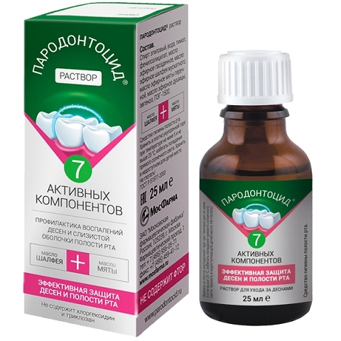 Пародонтоцид – серия средств по уходу за полостью рта для профилактики воспалительных заболеваний, обладает антисептическим, болеутоляющим и местным противовоспалительным действием. Способствует быстрой регенерации поврежденных тканей десен и пародонта, не нарушает микрофлору полости рта, предотвращает появление зубного камня.За счет ионов фторидапроисходит укрепление зубов.Вещества, входящие в состав препарата, не окрашивают...