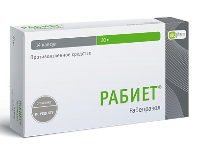Рабиет (МНН: рабепразол) входит в группу ингибиторов протонной помпы, подавляет секрецию желудочного сока путем специфического ингибирования протонного насоса. Биодоступность препарата не зависит от времени суток, приема пищи и антацидных препаратов. Действовать препарат начинает в первый час после приема, сохраняя эффект в течение суток. Рабиет входит в стандарты лечения язвенной болезни желудка и двенадцатиперстной кишки.