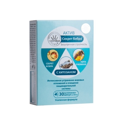 «Секрет бобра» АКТИВ с хитозаном – нативная формула природного комплекса усиленного действия в растительных капсулах. Натуральный нативный комплекс из бобровой струи, хитозана, активизированный пергой пчелиной, обладает интенсивным действием в направлении очищения крови, пищеварительной системы, устранения лишнего веса, улучшения моторики кишечника и предотвращения токсикоза лимфы.