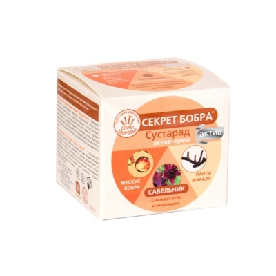 Натуральный актив-крем «Секрет бобра» СУСТАРАД – природный комплекс проникающего действия, оказывающий интенсивное противовоспалительное, ранозаживляющее, болеутоляющее, регенерирующее и тонизирующее действие. Крем не содержит искусственных и химических веществ, уникальная нативная формула крема оказывает усиленное комплексное воздействие на причину боли и сопутствующие осложнения вокруг воспаленной области и на поверхности кожи.